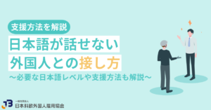 以下の記事では、日本語が話せない外国人労働者との接し方を解説しています。日本語教育の支援方法も紹介しているので、あわせてご覧ください。