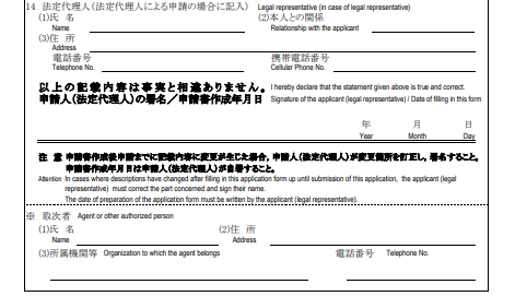 法定代理人と取次者が申請した場合は、それぞれの情報と署名を記載してください。