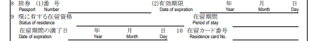 9在留資格の情報在留カードに記載されている在留資格と在留期間、在留期間の満了日を転記する