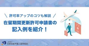 以下の記事では、在留期間更新許可申請書の書き方を記入例を交えて詳しく解説しています。許可率アップのコツも紹介しているので、参考にしながら書いてみてください。